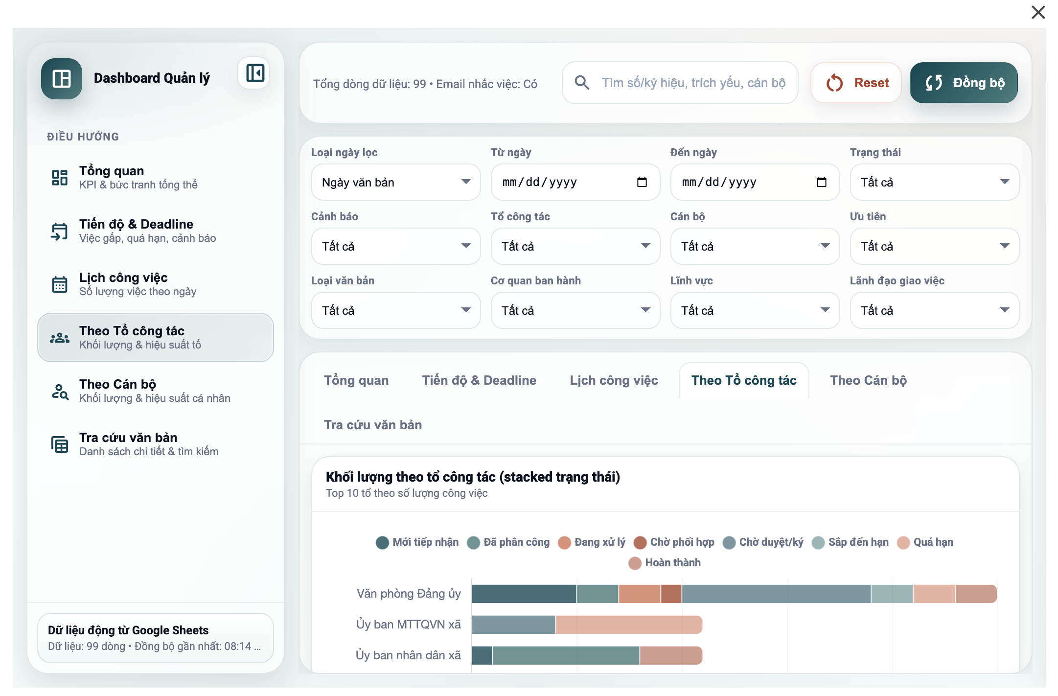 Theo dõi đơn vị, cán bộ đang xử lý nhiều việc và tiến độ thực hiện